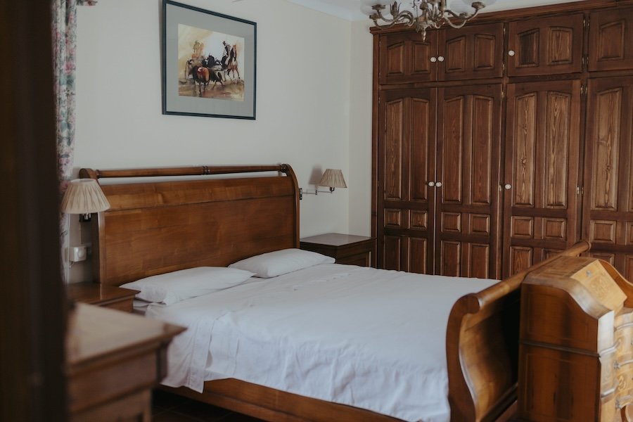 Equipada con todas las comodidades necesarias para una estancia confortable, incluyendo una cama doble, un amplio armario empotrado y detalles cuidadosamente seleccionados que reflejan el encanto del entorno rural.