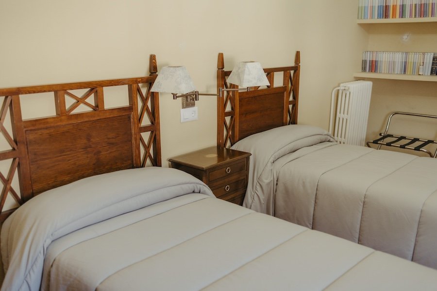 Equipada con dos camas de 90 cm, un armario empotrado, una estantería de obra y una mesa auxiliar. Aquí encontrarás todo lo necesario para un descanso tranquilo y confortable durante tu estancia.