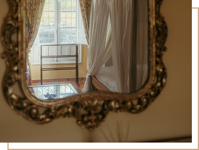 Suite de lujo donde el encanto y el confort se encuentran en cada detalle. Una majestuosa cama con dosel es el centro de atención, acompañada de un aparador, mesa auxiliar, sofá y sillón. Aquí el lujo se fusiona con la comodidad para ofrecerle una experiencia inolvidable.